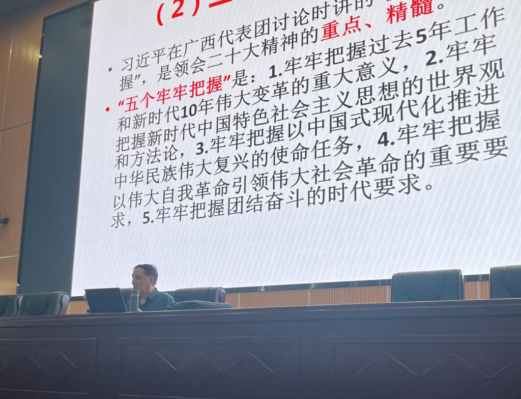 报告会上,陈尚伟教授通过导读的方式,对党的二十大报告进行了深入阐释,以深厚的理论功底和清晰的逻辑线条带领大家深刻领会了党的二十大主题、过去5年工作和新时代10年伟大变革、新时代中国特色社会主义思想及其世界观和方法论、以中国式现代化推进中华民族伟大复兴的使命任务、未来一个时期党和国家事业发展的战略部署、以伟大自我革命引领伟大社会革命的重要要求团结、奋斗的时代要求等党的二十大精神的丰富内涵。