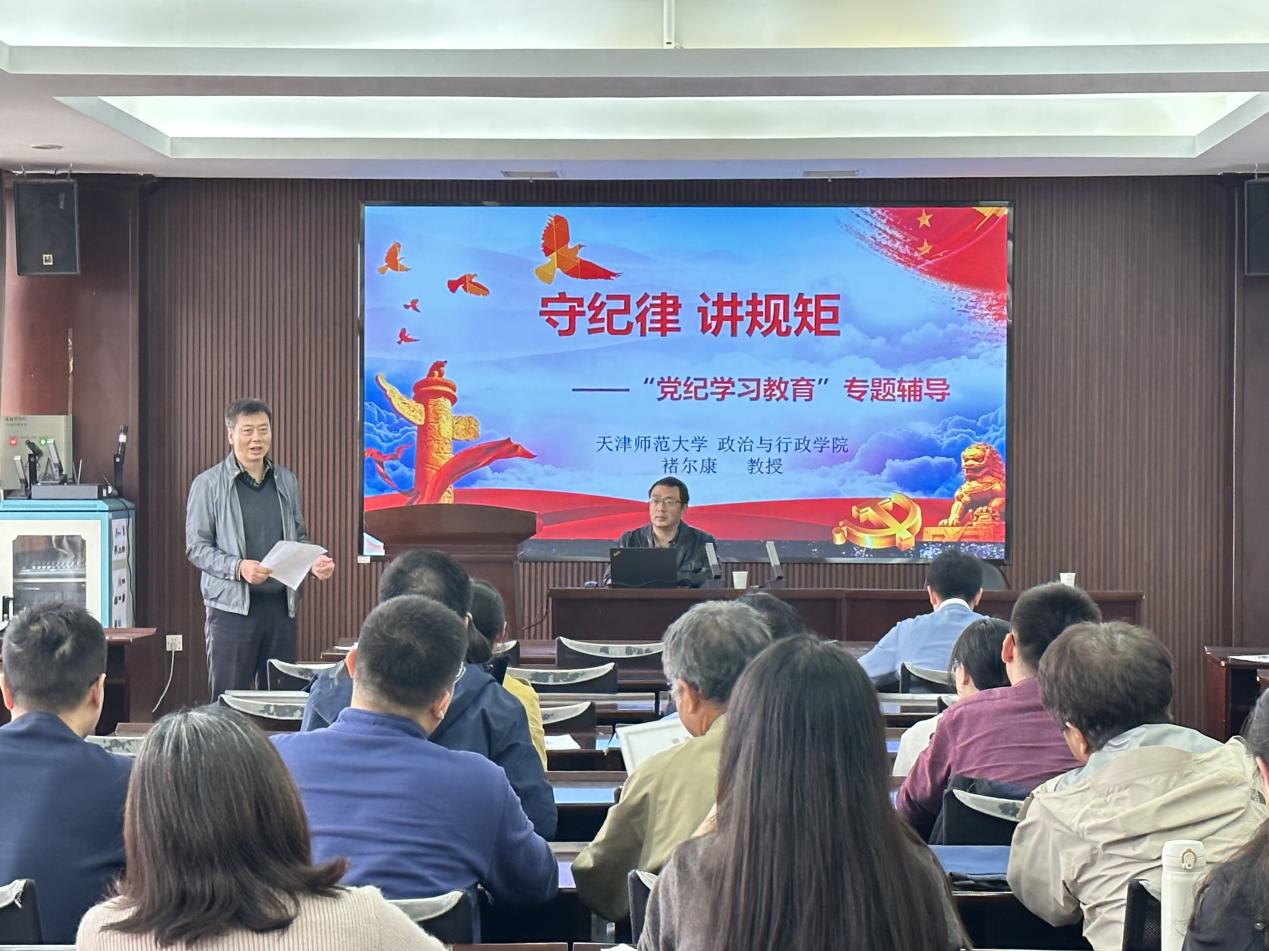 为深入贯彻党的二十大及全国教育大会精神,推动全面从严治党向纵深发展,进一步巩固深化党纪学习教育,扎实推进师德师风建设,教育引导全体教师学纪、知纪、明纪、守纪,10月31日,开云kaiyun体育党委邀请政治与行政学院褚尔康教授为学院全体教师讲授《守纪律,讲规矩》专题党课。会议由学院党委书记杨庆主持。