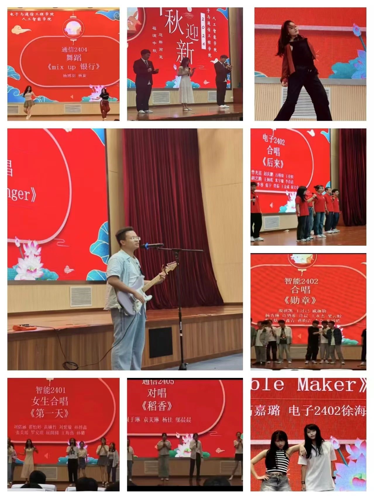 盈月揽芳华,天涯共此时。9月17日,电子与通信工程、人工智能学院2024年新生联欢会在会议中心报告厅举行。学院党委副书记、纪委书记秦浩,院团委书记、学工办主任田添,辅导员高悦桐参加活动,全体2024级新生济济一堂,共度佳节。