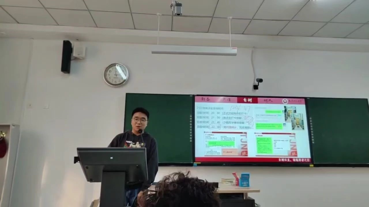 我院电子信息科学与技术专业的黄鹏同学,获“王克昌奖学金”。他从学习、实践、科创竞赛、防止内耗四个方面分享了他的经验做法,同时激发了同学们强烈的竞赛激情。