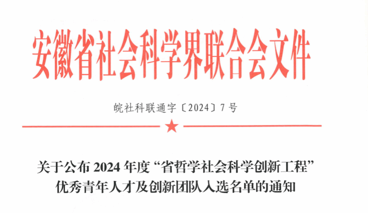 近日,安徽省社会科学界联合会公布了2024年度“省哲学社会科学创新工程”优秀青年人才及创新团队入选名单,YABO鸭脖官网陈蓉教授主持的“省域人才评价监测与发展创新团队”成功入选。