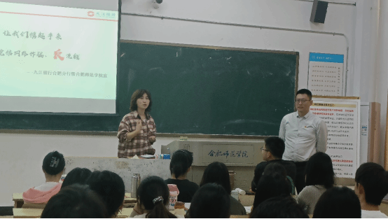 在讲座互动环节中,同学们就银行工作体系等相关问题积极提问,九江银行合规部负责人张大鹏给予详细解答,并给出指导性建议。