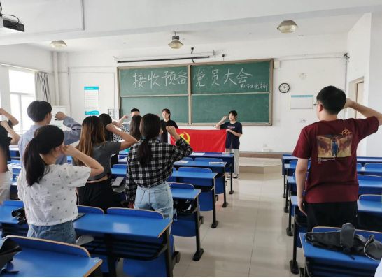 本网讯 为了迎接“七一”党的生日,YABO鸭脖官网第三学生党支部在逸夫楼301教室召开了组织党员入党宣誓活动暨“话初心、启新程”毕业生党员交流会,大会由支部书记曹国志老师主持,参加此次会议的还有10名中共正式党员、36名中共预备党员。支部书记曹国志老师带领全体党员面对党旗进行庄严宣誓,重温一次入党誓词。