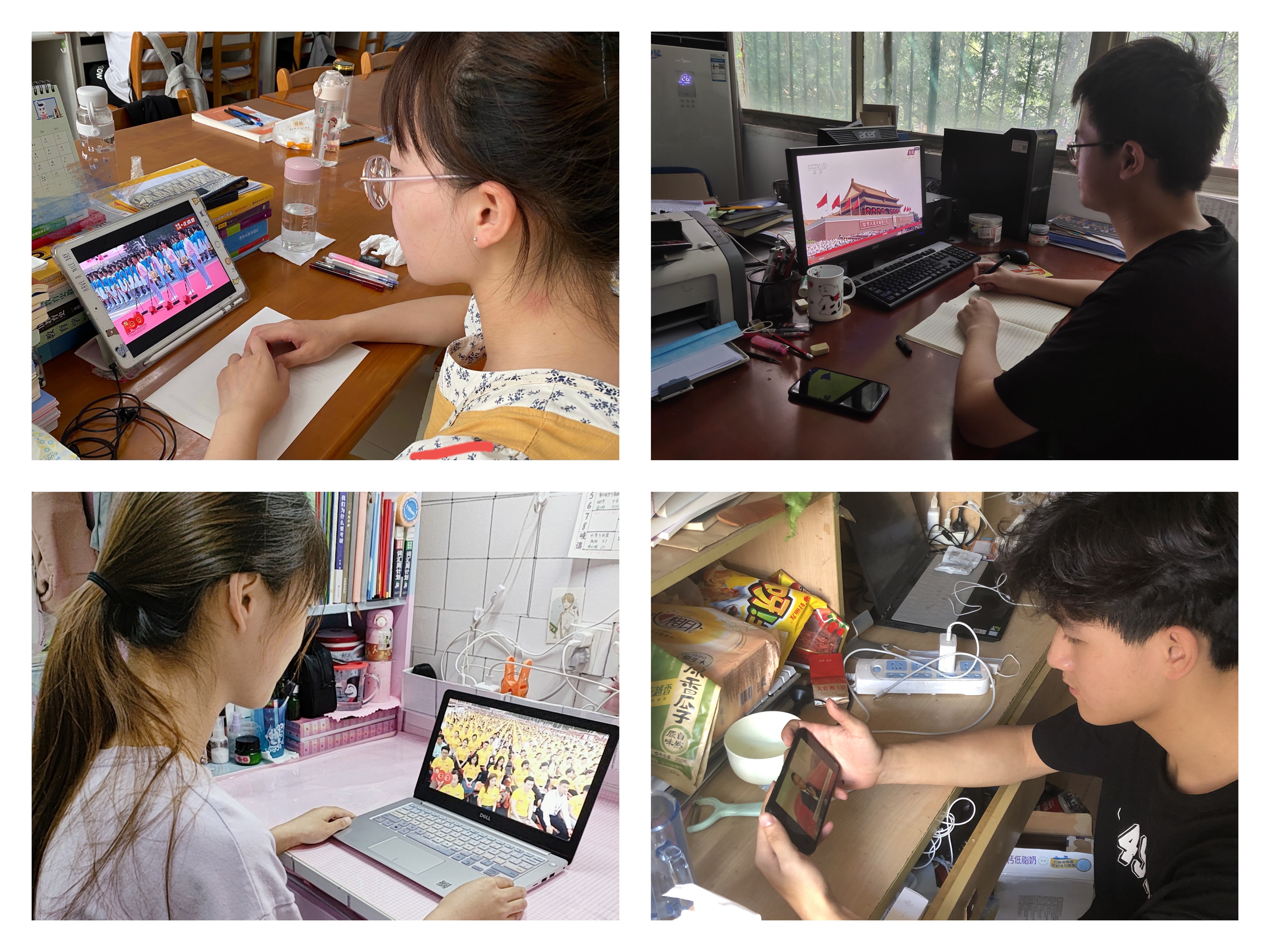 本网讯7月1日上午,庆祝中国共产党成立100周年大会在北京天安门广场隆重举行,中共中央总书记、国家主席、中央军委主席习近平发表重要讲话。YABO鸭脖官网组织学生在锦绣校区、滨湖校区、三孝口校区采取集体收看、集中收看、就地就便收看等多个层面收看大会盛况。