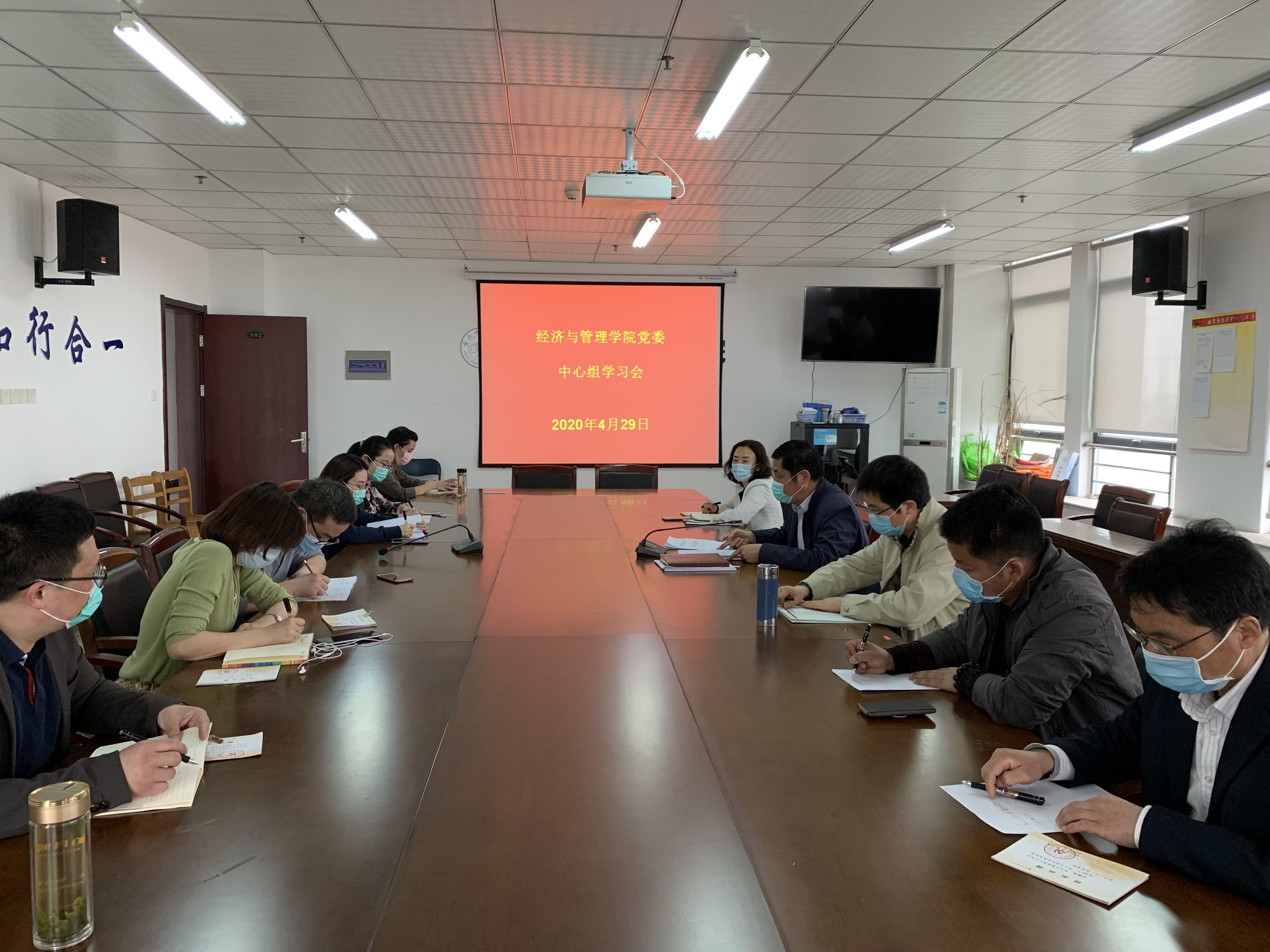 4月29日下午,YABO鸭脖官网党委召开中心组扩大学习会议。学院党委委员、党委秘书、党支部书记、专职辅导员参加会议。经管院党委书记沈辉主持会议。