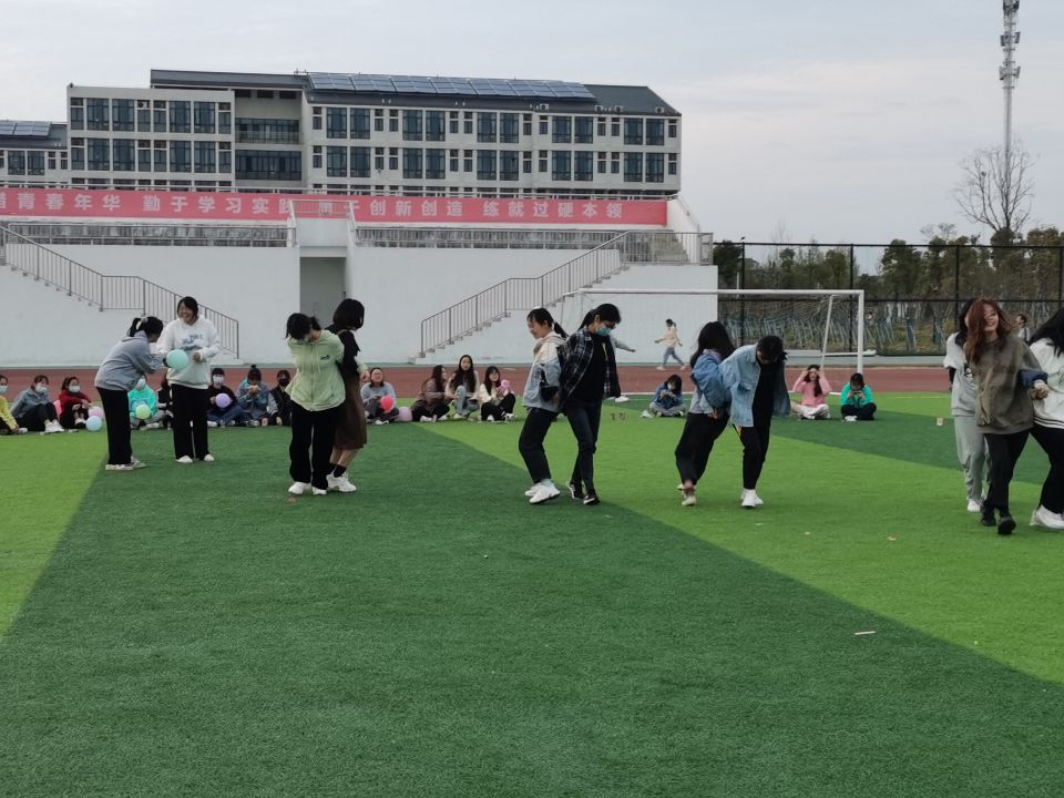 踩气球、夹气球、击鼓抱团等游戏环节,同学们站在原地蓄势待发,随着主持人一声令下,各个队伍你追我赶,场面十分热闹。场外,加油声、欢呼声不绝于耳,最后胜出的是两个女生队伍,巾帼不让须眉的精神着实令人佩服。