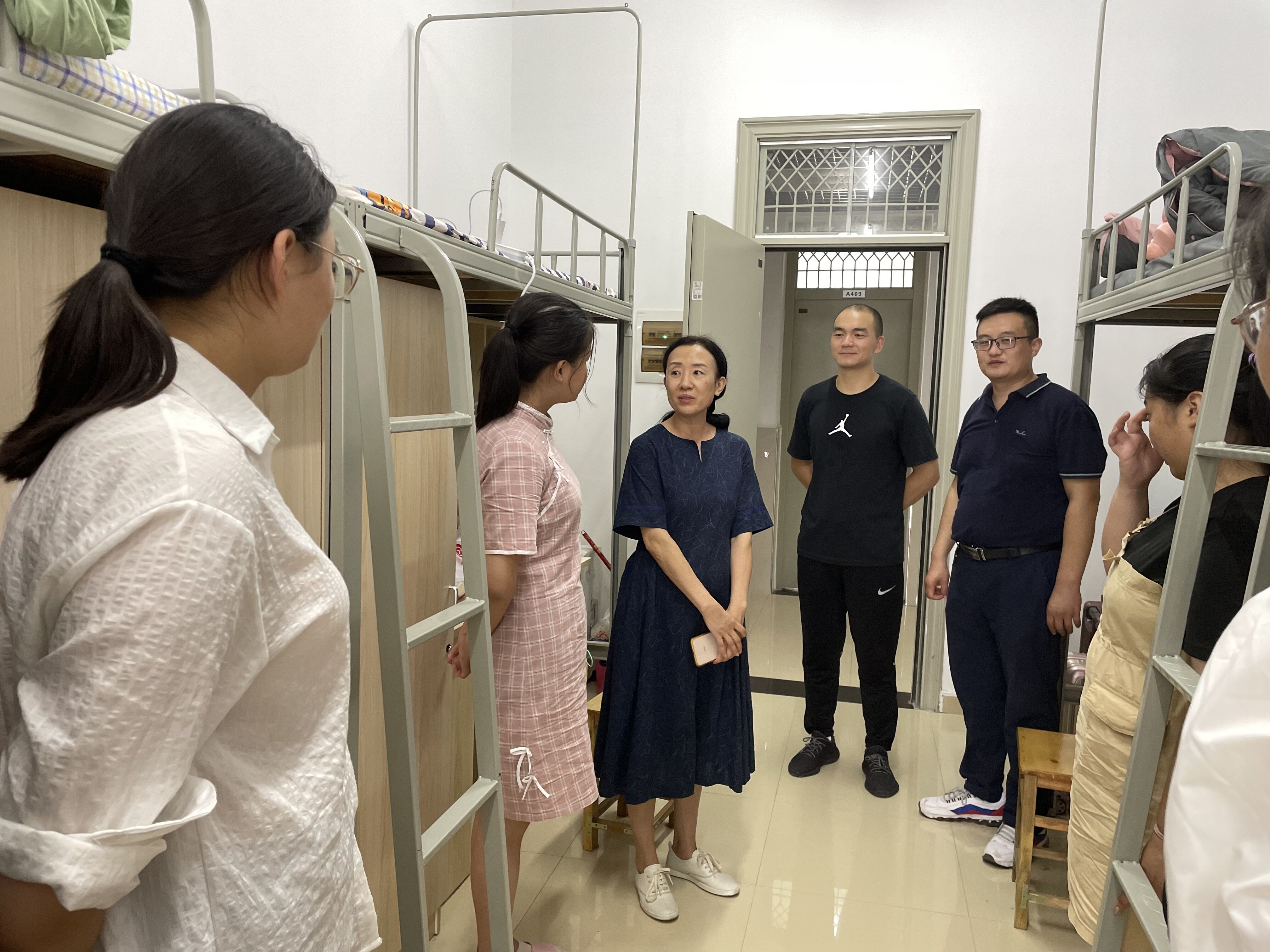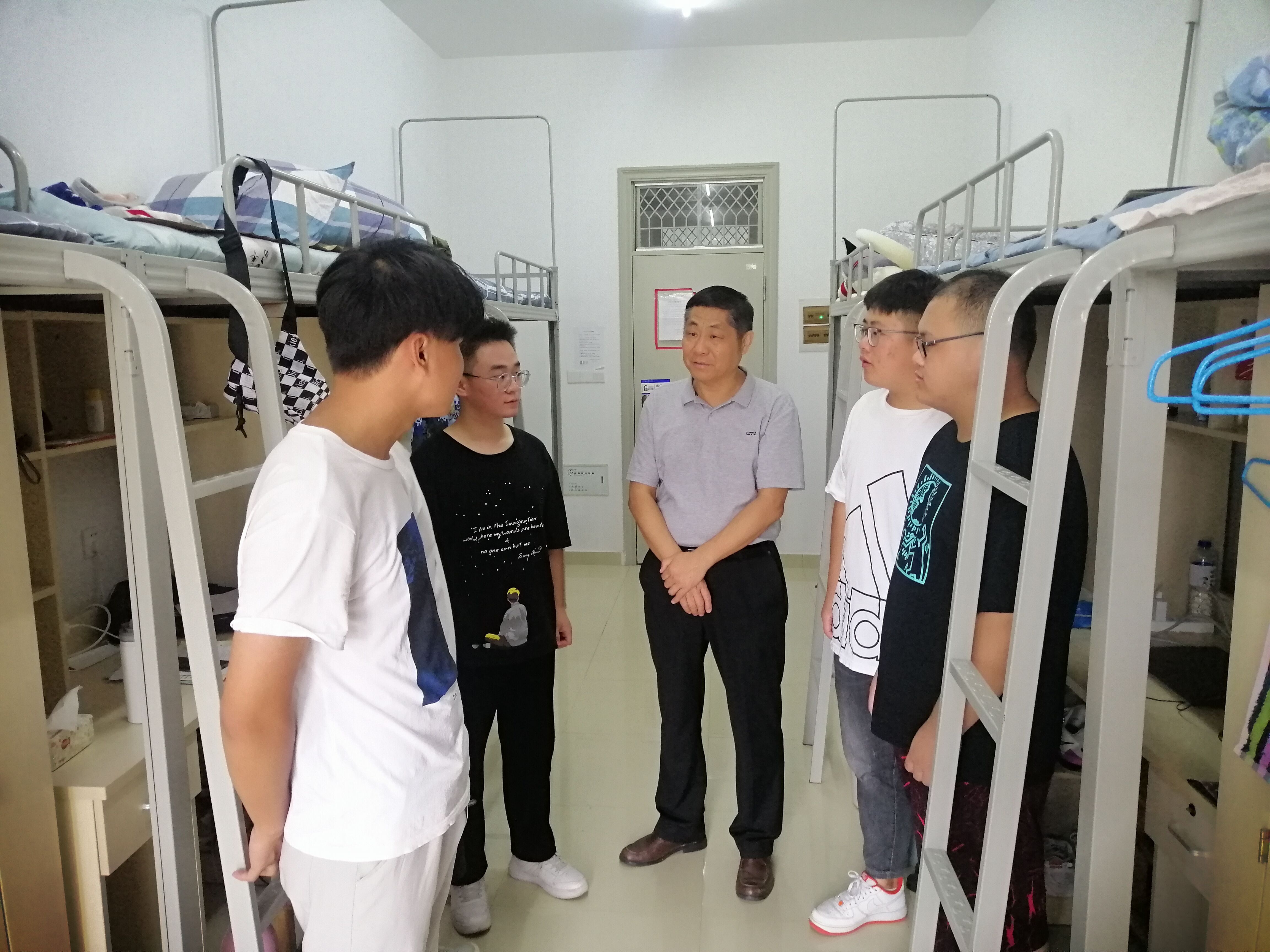 走访过程中,领导老师们亲切地和新生进行交谈,沈辉勉励大家要对大学有更清晰的认知,对自己有更明确的定位。希望大家能珍惜大学四年的时光,积极参加各类实践活动,全面提升个人的综合能力。随后,同学们就宿舍环境、校园安全、后勤保障等问题与老师进行交流,陶敏特别叮嘱新生们遇到困难及时和老师反映,并提醒同学们要整齐摆放好桌椅,整理好物品,共同营造良好的宿舍氛围,并提醒大家保持警惕,保管好自己的财务,切不可上当受骗。