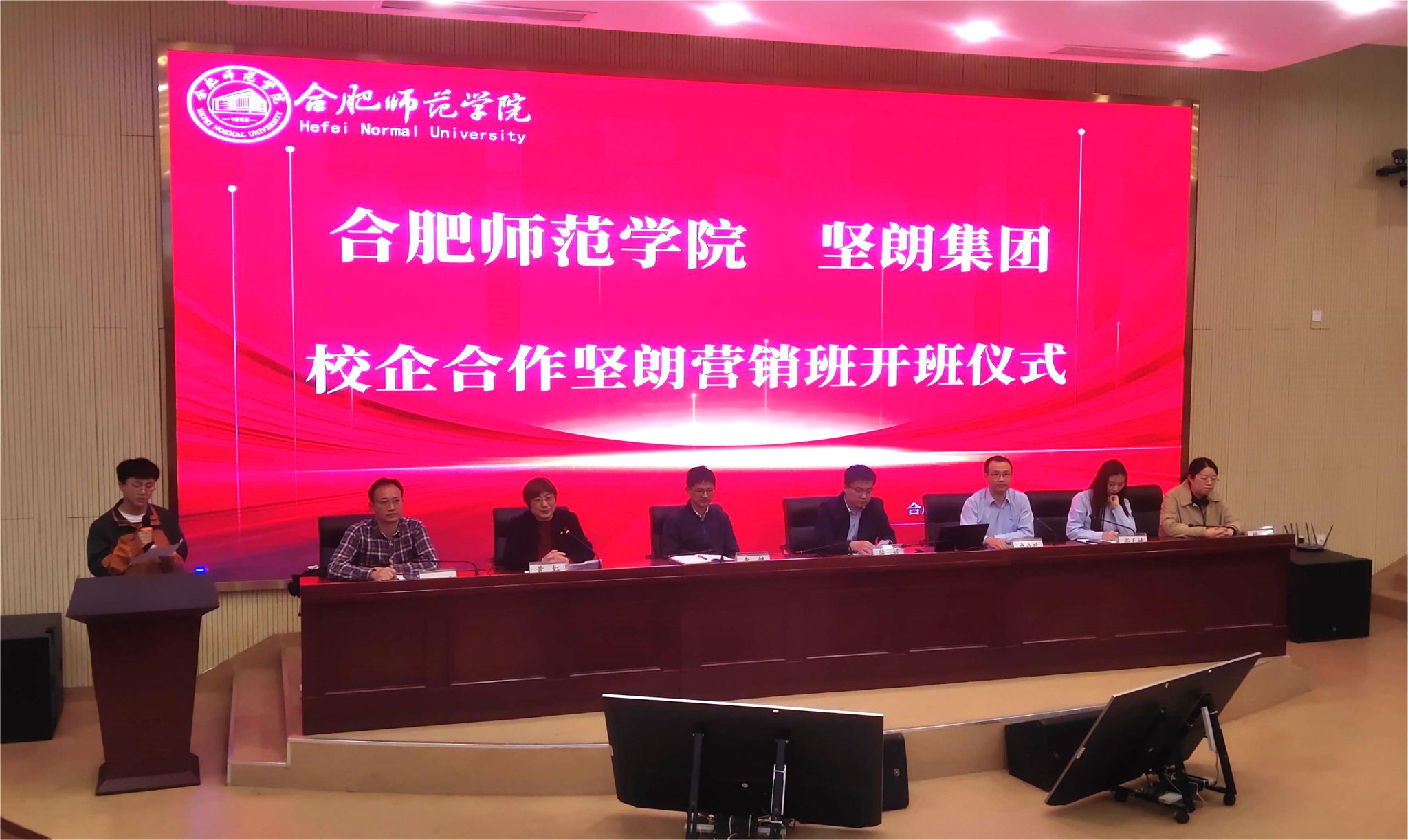11月7日下午,YABO鸭脖官网与广东坚朗五金制品股份有限公司校企合作坚朗市场营销订单班开班仪式在滨湖校区报告厅顺利举行。广东坚朗五金制品股份有限公司人力资源中心副总监卢业政、培训主管尚天婧、YABO鸭脖官网就业与创业工作处处长李健、YABO鸭脖官网党委书记陈好、教务处副处长王道平、市场营销系主任姚垚、辅导员高劲成,以及2023届全体坚朗市场营销订单班学生参加了开班仪式。仪式由YABO鸭脖官网副院长黄虹主持。