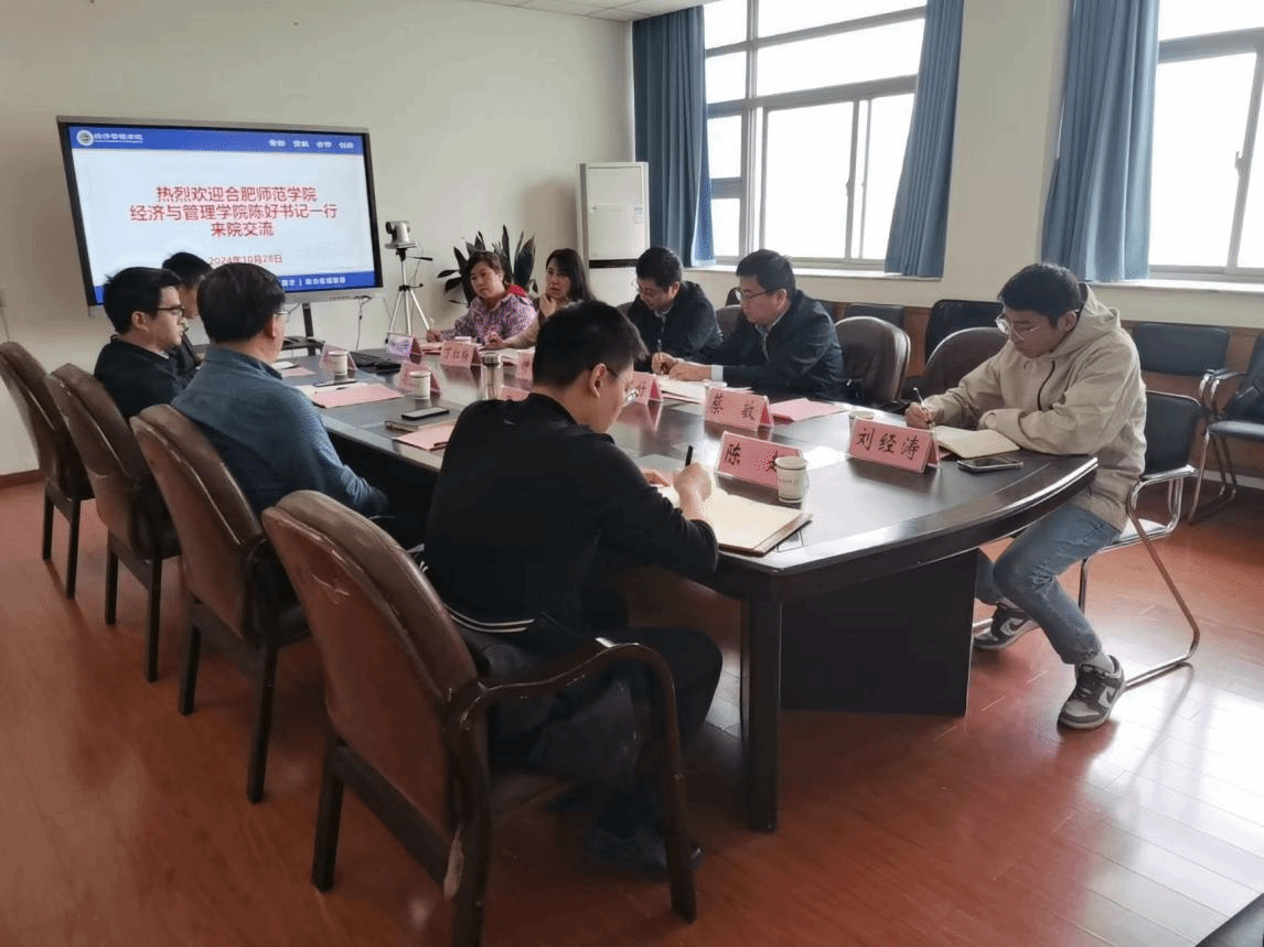陈好代表合师经管院介绍了学院的基本情况、师资队伍、专业结构及人才培养等,并就学院下一步发展进行了深入交流。钟玉文院长就学科点申报、专业转型、教师发展以及新进博士培育等方面取经学习。会上,丁红梅、郭云和刘经涛等老师关于调研主题的相关事项进行了深入交流,在开展工作的机制成效方面充分交流了经验。