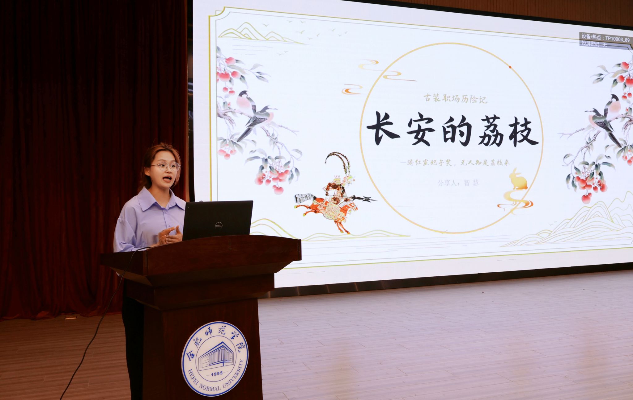 智慧同学自入学以来,始终以“知行合一”为座右铭,不仅在学业上保持热情,更以阅读为纽带深耕人文素养。大一学年,她以综合测评第二名的优异成绩获得校级奖学金及“三好学生”称号。在本次“合师悦读”主题读书分享会活动中,她介绍马伯庸的历史小说《长安的荔枝》,通过PPT生动还原了唐代荔枝运输背后的制度困境与人情冷暖。汇报中,她以详实的史料考据、清晰的逻辑框架,结合财务管理的专业视角,剖析书中“一骑红尘”背后的经济链条与社会隐喻,将文学赏析与学科思维巧妙融合,赢得评委赞誉。