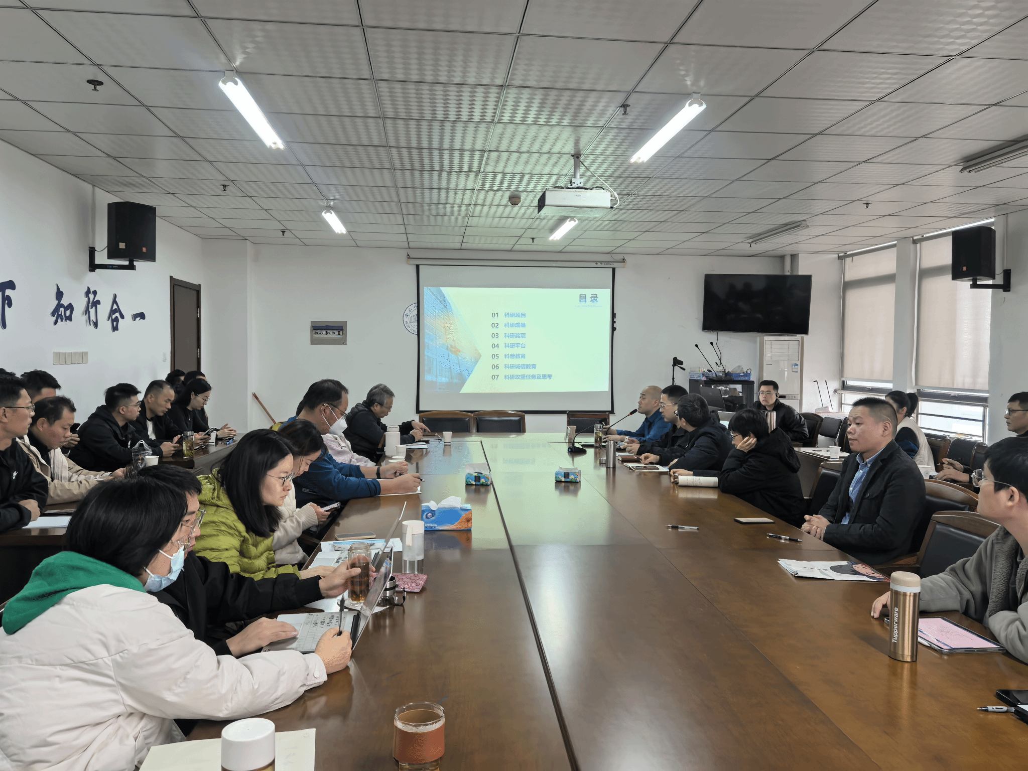陶有浩介绍了科研处关于项目、成果、奖项“三件套”管理的基本思路,申硕更大的科研攻坚任务,并结合年度考核,分析了完成科研考核的发力点;引导老师要从纵向横向两个项目类别研究上全面发力;阐述了营造浓郁科研氛围,打造科研团队的重要性。