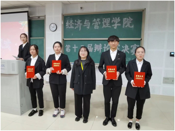 此次辩论赛决赛的参赛人员都是通过初赛、复赛层层筛选的出色选手。决赛上,气氛紧张而激烈,高光场面不断。双方辩手针锋相对,唇枪舌战,你来我往,却又不失风度。尤其是在自由辩论环节,各个辩手反应迅速,逻辑清晰。最后评委的现场点评更是让各位辩手获益匪浅。经历两场激烈的角逐以及评委公正的评判,由队长20级国际经济与贸易蒋梦婷组成的“是你不队”团队获得冠军,20财务管理1班刘晓腾和20级经济学班阮康辉获得了最佳辩手称号。