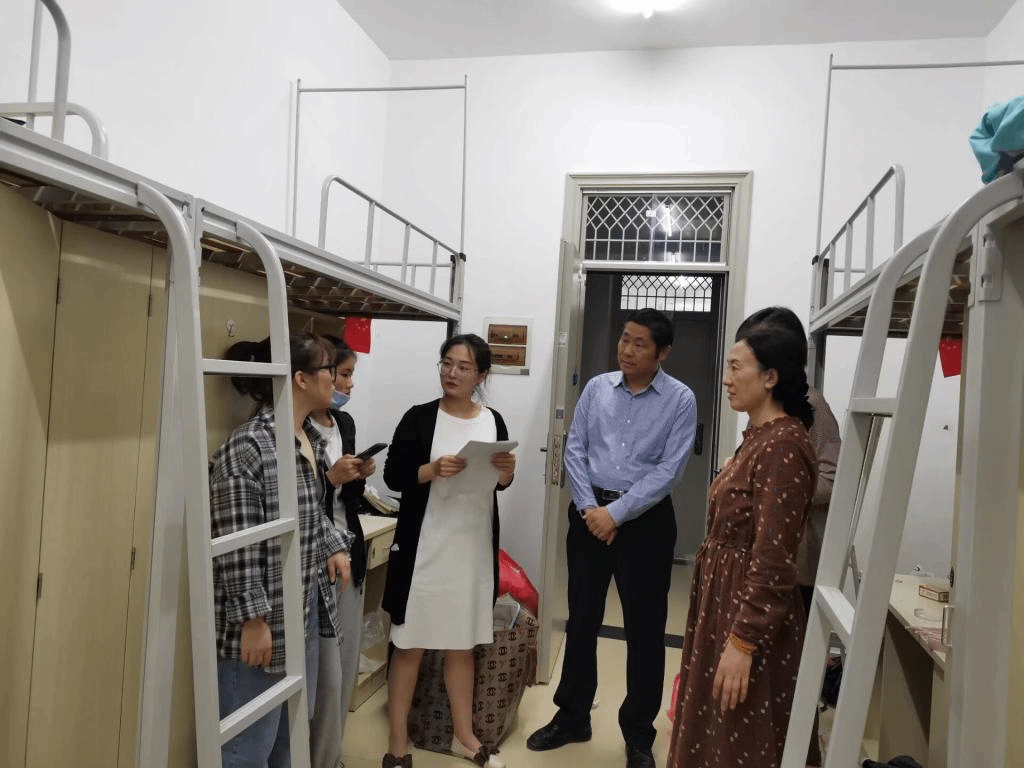 报道当天,学院党委书记沈辉、副书记陶敏以及滨湖校区辅导员前往新生寝室,看望刚刚到达寝室的新生们,沈辉亲切地询问他们的生源地、报道情况,陶敏则表示在做好自身防护的同时,鼓励尽快适应大学生活。表达了对于新生们的殷切希望和祝福。