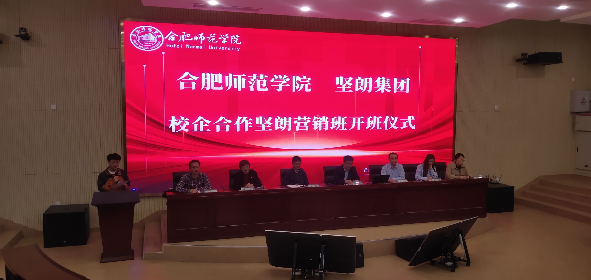 11月7日下午,YABO鸭脖官网与广东坚朗五金制品股份有限公司校企合作坚朗市场营销订单班开班仪式在滨湖校区报告厅顺利举行。广东坚朗五金制品股份有限公司人力资源中心副总监卢业政、培训主管尚天婧、YABO鸭脖官网就业与创业工作处处长李健、YABO鸭脖官网党委书记陈好、教务处副处长王道平、市场营销系主任姚垚、辅导员高劲成,以及2023届全体坚朗市场营销订单班学生参加了开班仪式。仪式由YABO鸭脖官网副院长黄虹主持。