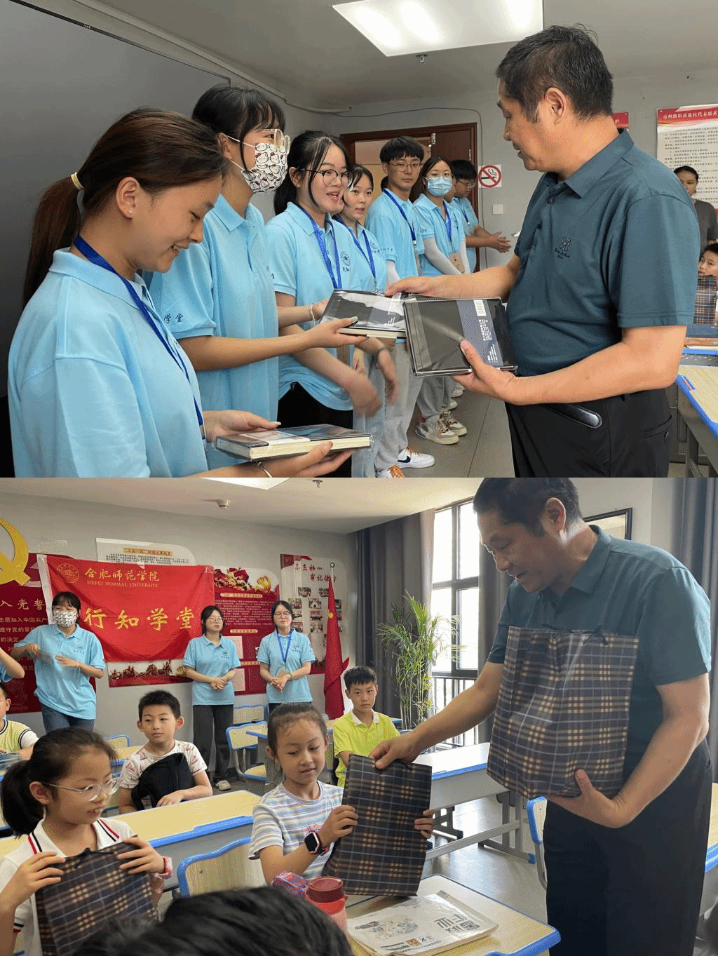 随后,领导们将学习用品赠送于小学员与小先生。