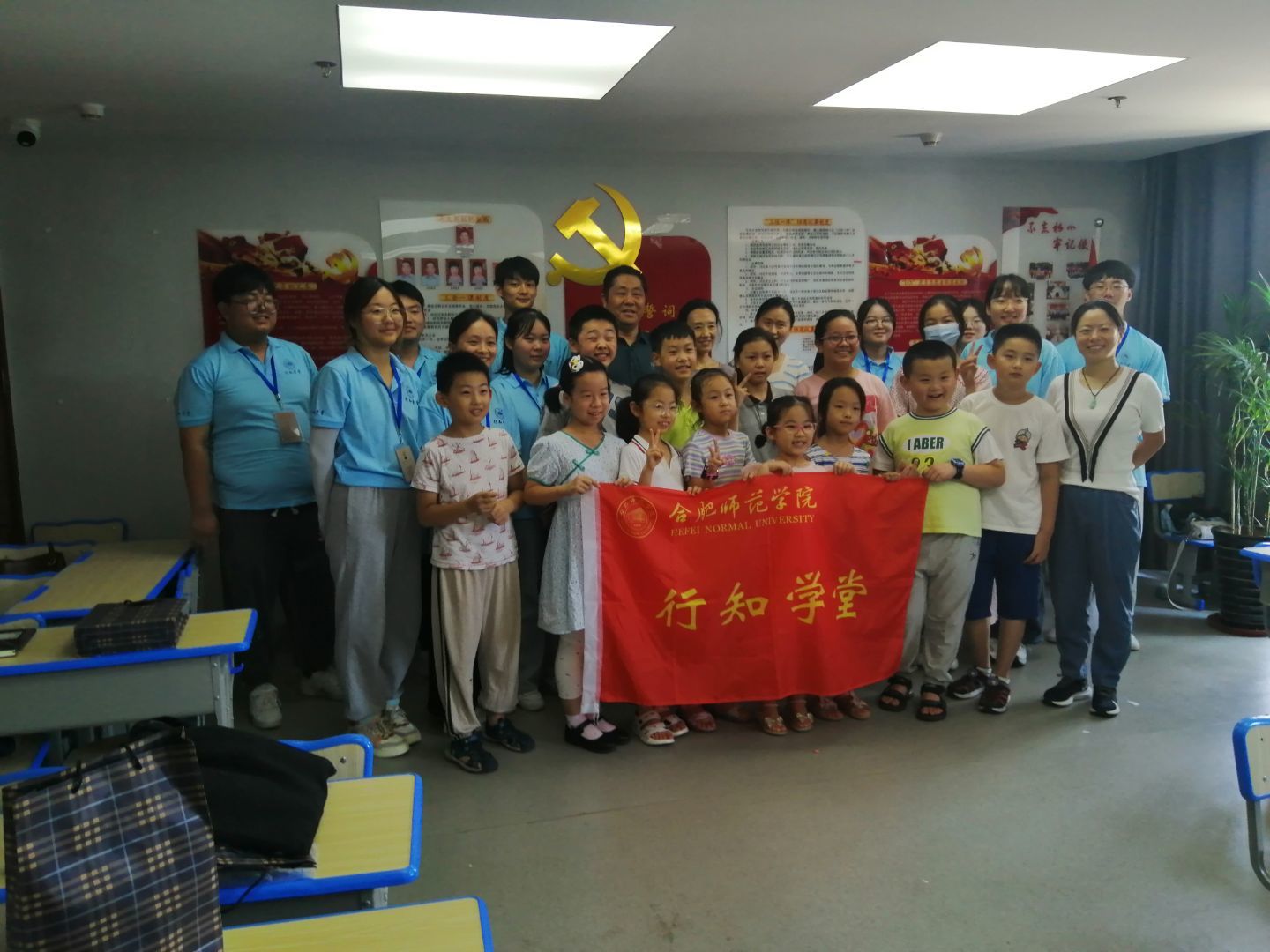 本网讯 7月12日,YABO鸭脖官网党委书记沈辉、副书记陶敏和行知学堂指导教师赵燕一行来到庐阳区鲁园社区党群服务中心,看望和慰问在这里开展行知学堂的小先生和小学员们。