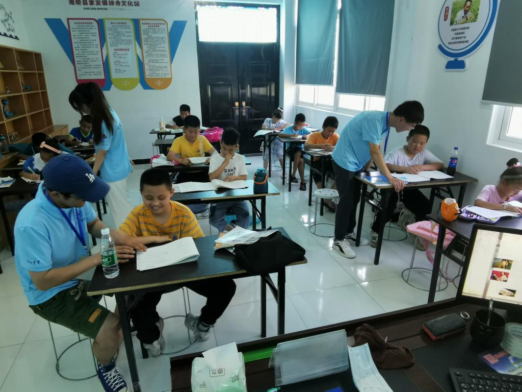 7月11日上午,芜湖市南陵县家发镇团委联合我校YABO鸭脖官网开办的“行知学堂”正式开班。早在7月10日6名“小先生”就已经到达发家镇,并着手开始准备工作。翌日早上8:00,在当地负责老师的协助下,6名“小先生”开展有序的报名活动。上午8:30,开班仪式正式开始。