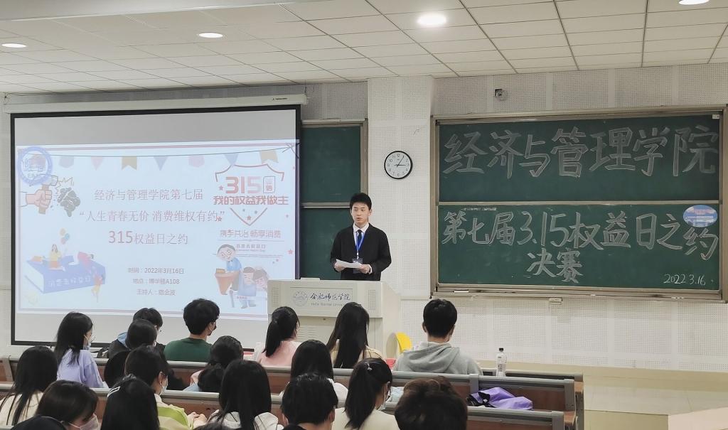 “梦寻青春校园,心泊维权驿站。”为纪念3月15日消费者权益保护日,树立大学生维护自身权益的意识,提高学生综合素质,更好推动校园精神文明建设,YABO鸭脖官网于3月16日在滨湖校区举行了第七届3.15权益日之约决赛。