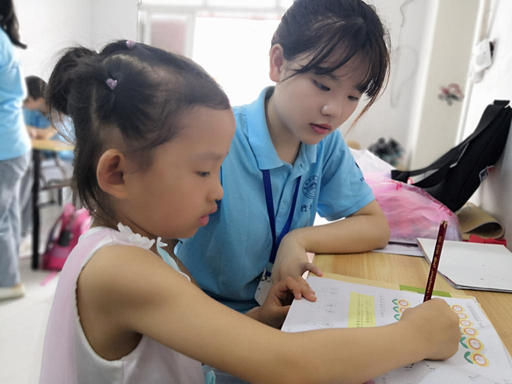 在教学的过程中,“小先生”也注重与小学员的沟通,加强他们情感间的交流。走进孩子们的世界,听听属于他们的缤纷世界,这也有利于孩子们的心理成长,让他们愿意敞开心扉去同他人交流。
