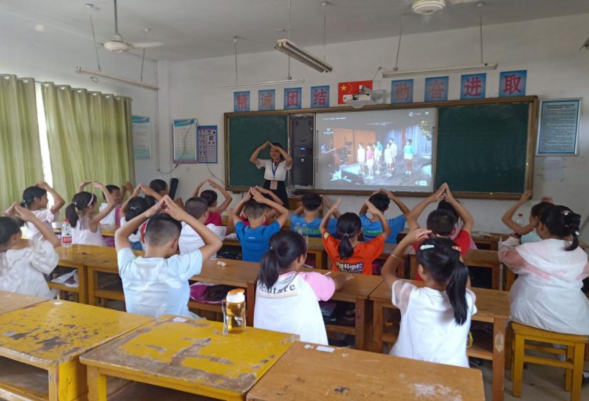在课余之时。“小先生们”带领着同学们做“贴烧饼”的游戏,增进老师和同学以及同学之间的感情。