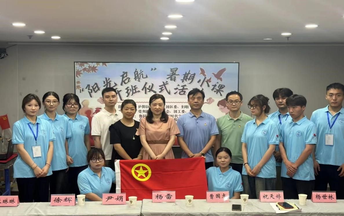 7月15日,YABO鸭脖官网鲁园社区“行知学堂”正式开班,鲁园社区街道总工会党委书记、全国劳模代表徐辉、学堂指导老师曹国志,10名小先生、17位小学员及家长代表到场参加。