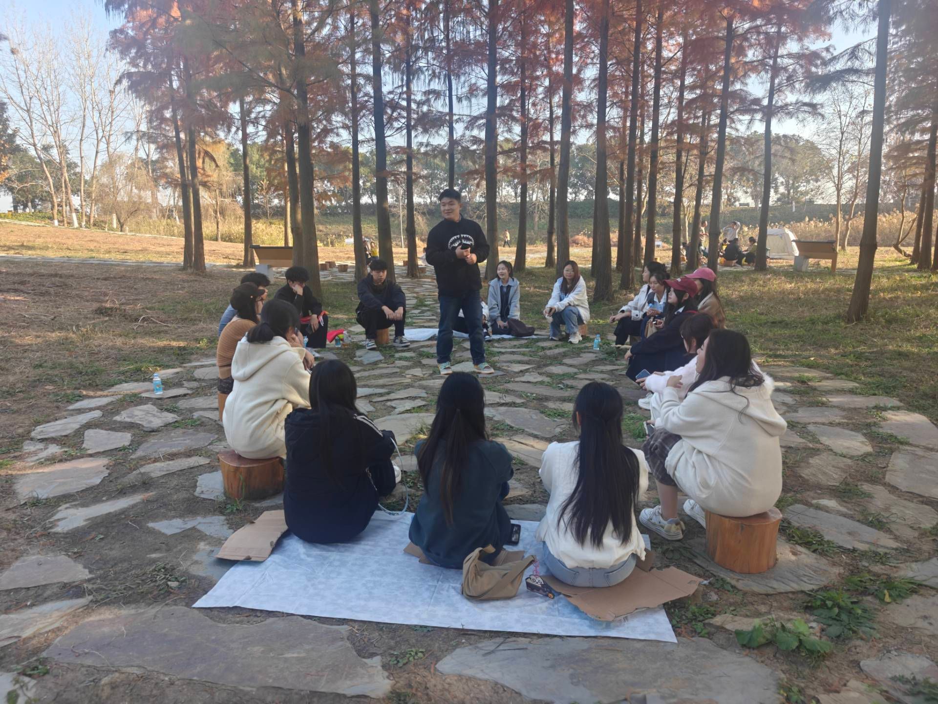 团建首站抵达巢湖市月亮湾湿地公园,清风拂面、绿意盎然的自然环境为团课营造了轻松氛围。大家围坐于绿茵之上,以天地为课堂,以清风为信使,围绕理想信念的坚守、团队协作的要义等主题各抒己见。分团委指导老师黄翔以鲜活的案例分享,让理论学习不再局限于书本的方寸之间,而是在自然的浸润中入脑入心,让团结协作的种子在欢声笑语中悄然生根发芽。